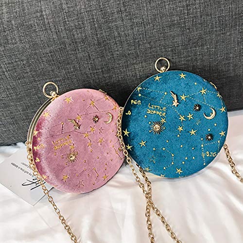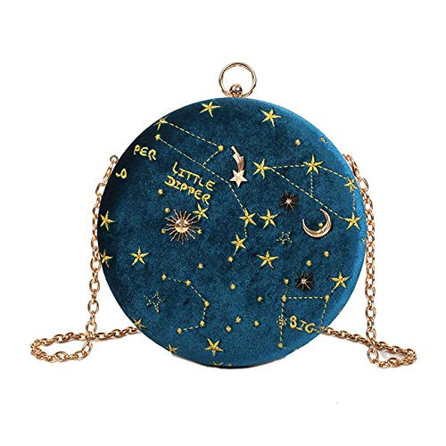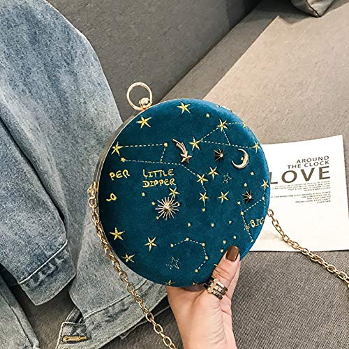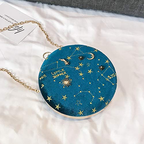 Tamkyo Borsa un Tracolla Circolare nel Pelle Scamosciata con Cielo Stellato Borsa un Tracolla con Catena di Lusso di Lusso Borsa un Tracolla da Donna Portafoglio Rotondo Blu