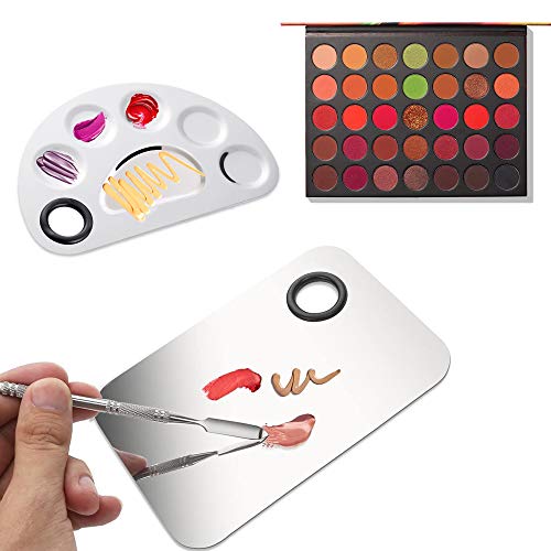 Tamon Miscelazione Palette del Trucco, Acciaio Inossidabile Tavolozza di Miscelazione con Spatola per Cosmetici e Nail Design (Pacco da - 2)