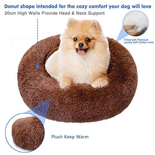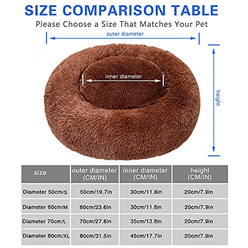 TAMOWA Cuccia per Gatti Letto per Cani Rotondo, Peluche Ciambella per Animali Domestici, Cuscino Rotondo in Morbido Peluche per Gatti e Cani di Piccolo Media Taglia, 80CM, Marrone
