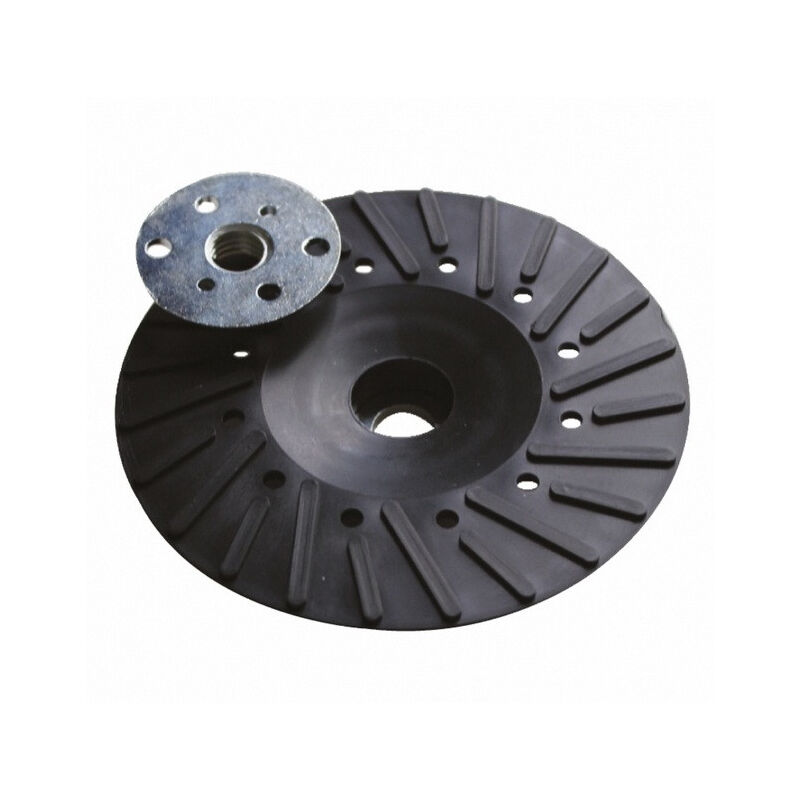Leman - Tampone in gomma per disco in fibra 125mm M14 - il ø 180 è progettato per la smerigliatrice ø 230 al fine di limitare le vibrazioni durante la levigatura. - Consegnato con dado di serraggio M14. Diametro: 125 mm Filetto della vite: M14