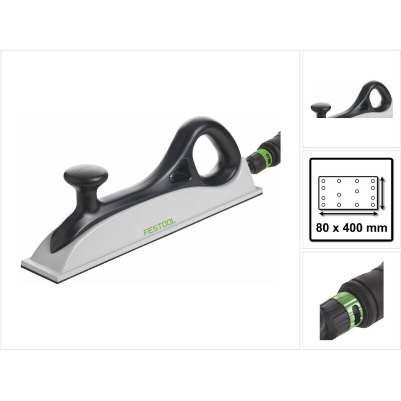 Festool Tampone di levigatura HSK-A 80x400 - 496964 Levigatura manuale con aspirazione. Vantaggi e benefici Adattamento della potenza di aspirazione, grazie alla regolazione bypass Nessun danneggiamento della superficie, grazie ai bordi arrotondati del velcro Impugnatura ergonomica con superficie facile da impugnare, che protegge le mani dalla formazione di ciocche Piastra di levigatura dalla forma ergonomica, adatta agli abrasivi Festool di dimensioni 80 x 400 mm Adattatore per tubi flessibili Festool Principali applicazioni Per una rapida levigatura a mano dei bordi esterni e interni e degli angoli nella zona di stuccatura e automotive Per la levigatura intermedia e di finitura Decoratori e verniciatori Cartongesso abrasivo adatto 80 x 400 mm Dotazione adattatore per tubo Festool, adattatore bypass, in cartone (Condizioni di garanzia, vedere www.festool.fr/service) Peso del prodotto 0.28 kg Peso del prodotto 0.52 kg Il tampone di levigatura manuale con aspirazione è ideale per