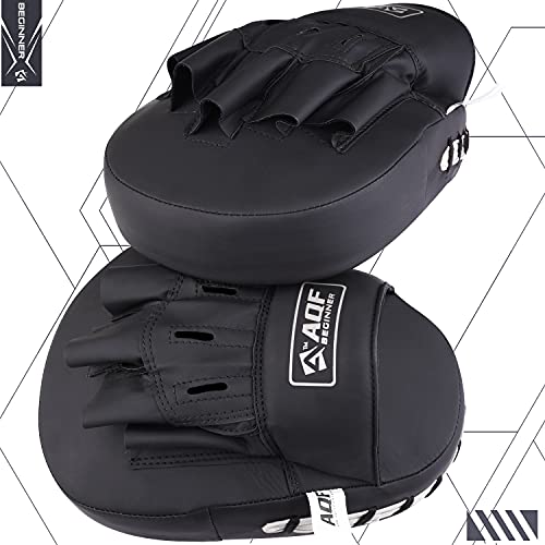 Serie per principianti di AQF: i cuscinetti per messa a fuoco AQF sono appositamente progettati per l'allenamento di boxe con ecopelle di alta qualità per una maggiore durata e resistenza agli strappi. I cuscinetti Muay Thai sono realizzati a mano e cuciti con cura per la resilienza.