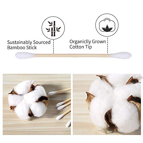Tamponi di cotone, 200 capi di cotone organico a doppia punta naturale, batuffoli di cotone senza crudeltà, ipoallergenici senza cloro