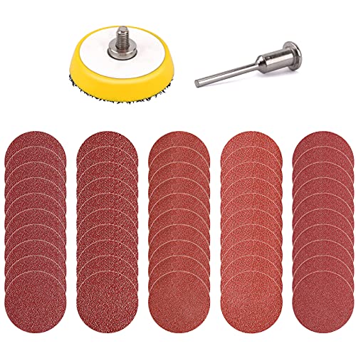 Kit tamponi per levigatura Ecarke, 50 pezzi 2 pollici 50 mm 60/80/120/150/180 / grana Dischi abrasivi rotondi per carta vetrata Fogli per lucidatura generale.