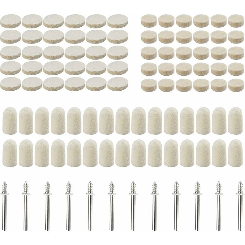 Kit mandrini per tamponi per lucidatura in feltro da 102 pezzi = 30 pezzi a forma di cilindro grande + 30 pezzi di palline a forma di cilindro piccolo + 30 pezzi + 12 pezzi di asta di metallo. Comodo e pratico: il disco in feltro è facile da usare, può essere utilizzato per gli accessori Dremel, utensile rotante, feltro, utensile rotante per molatura e lucidatura. Lucidatura e pulizia: appositamente progettato per lucidare, lucidare e pulire. Ottimo per la creazione di gioielli e lavori simili in quanto possono raggiungere e lucidare aree difficili da raggiungere, lasciando una finitura lucida sull'oggetto. Usi degli accessori: funziona perfettamente per lucidare, molare, intagliare e altro ancora, rendere i prodotti lucidati puliti e luminosi, meglio utilizzati per diversi tipi di muffe, vetro, pietre, ceramica, apparecchiature mediche, metallo, ecc. Con un'area di stoccaggio: alta qualità, durezza moderata. La scatola trasparente per riporla facilmente, può anche essere facile da