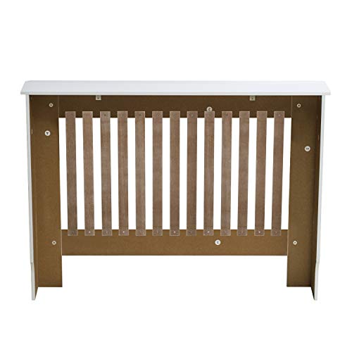 Tanburo, copri termosifone tradizionale opaco verniciato con copertura a doghe bianche verticali, E1, in pannelli di fibra a media densità, S: 112 cm x 19 cm x 81,5 cm