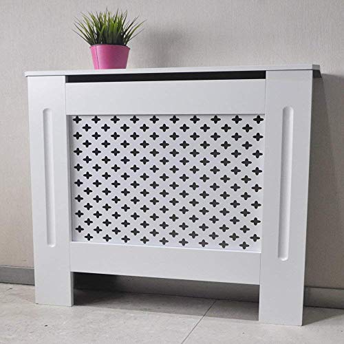 Tanburo - Copritermosifone tradizionale opaco verniciato con copertura a griglia bianca, MDF E1, misura media, 112 x 19 x 81,5 cm