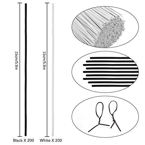 【400 pratiche fascette per cavi】Il nostro prodotto contiene 400 pratiche fascette per cavi in filo di ferro, 200 ciascuna in bianco e nero, con una lunghezza di 15 cm. Il quantita è sufficiente per soddisfare le tue esigenze quotidiane di lavoro o di vita.