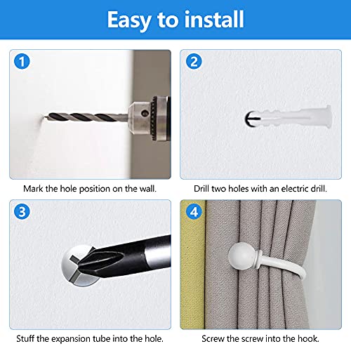 【Installazione Semplice】 Questo set di fermatenda in metallo contiene 2 fermatenda della tende, 4 viti e 4 tubi di espansione, accessori completi e non è necessario acquistarle separatamente. possono aiutarti facilmente a installare i ganci fissi. Durante l'installazione, inserire prima il tubo di espansione nel foro perforato, quindi serrare il gancio con una vite.
