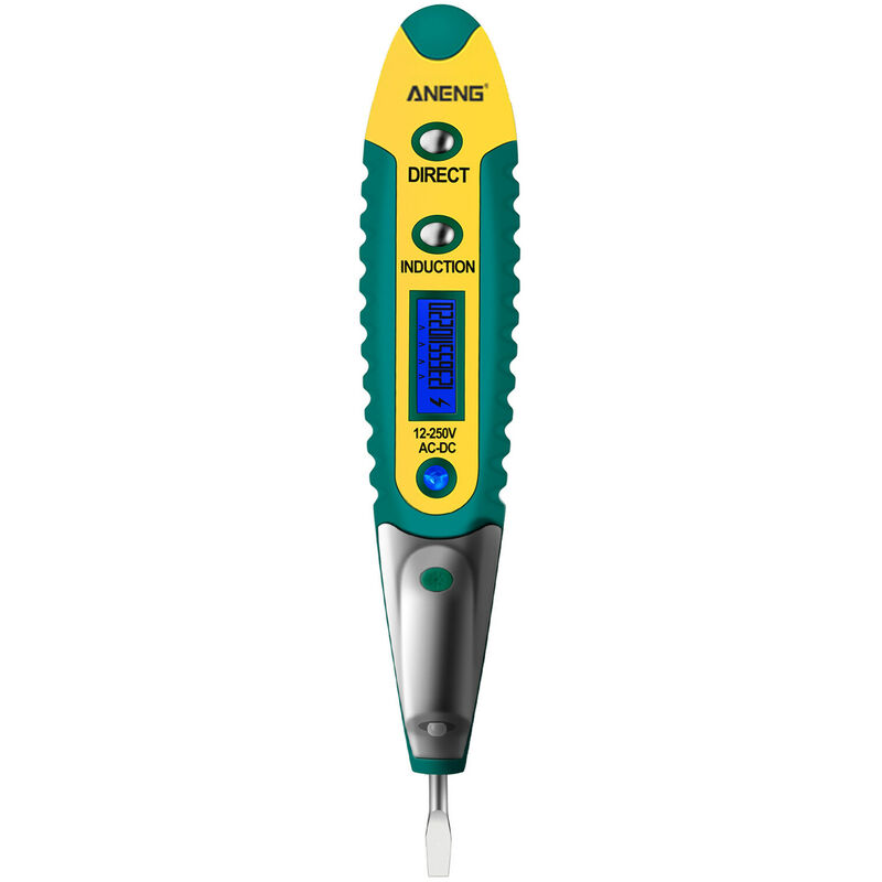 Ce stylo de test peut détecter la tension continue et alternative des pièces électrifiées. Spécifications: Matériau: alliage d'acier + ABS Couleur: jaune + vert Alimentation: 3 piles 1,5 V AG10 (NON incluses) Portée de détection: Tension CC: 12/36/55 V CC Tension CA: 70-250 V CA Taille de l'article: env. 143.5*26*18.7mm / 5.65*1.02*0.74in Poids de l'article: env. 30g / 1.06oz Taille du colis: env. 145*28*20mm / 5.71*1.1*0.79in Poids du colis: env. 35g / 1.23oz Liste de colisage: 1 * stylo de test