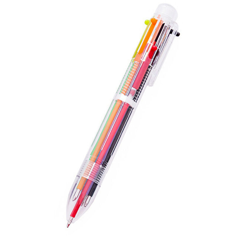 Specifica: Materiale: plastica e inchiostro Proprietà dell'inchiostro: oleoso 6 colori in 1 penna: rosso, Arancione, Verde, Blu, Viola, Nero Dimensioni: 17 x 1 x 1 cm Peso: 15 g Lista di imballaggio: 1 penna a sfera colorata 6 in 1