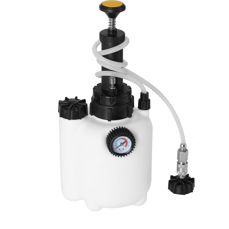 Ce purgeur de système de freinage automatique est fabriqué dans un matériau de qualité, 3L de grande capacité est également livré avec une bouteille d'aspiration de 1L. Non seulement facile à laver, mais aussi pratique et facilite la purge des freins sur une grande variété de types de véhicules. Équipé d'un manomètre coloré, et les données sont faciles à lire. Il y a deux unités sur le manomètre, bar (0-6) et psi (0-85). Vous pouvez essayer. Remarques: Assurez-vous qu'il ne reste aucune pression à l'intérieur de l'appareil. La pression peut être libérée de la soupape de décharge sur le côté de la pompe. Retirez le bouchon sur le dessus de l'unité avec du liquide de frein neuf. Assurez-vous qu'il ne reste pas de vieux liquide ou de débris dans le bidon. Spécifications: Nom: Kit de purge de frein Matériau: plastique Couleur: blanc Pression: 0-85 PSI (0-6 bar) < br /> Capacité de purge de frein: 3L Taille de l'article: Purge de frein: 180 * 175 * 40mm / 7,09 * 6,89 * 1,57in