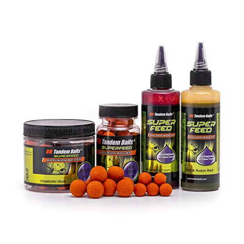 Tandem Baits Set di 4 Diffusion Baits Fishing Box L | Mini Pop Up Boilies 12 mm | Pop Up Boilies 16 mm | Diffusion Booster Attractor | Carpfishing Pesche Pesca Accessori | Alimentatore per la Carpa