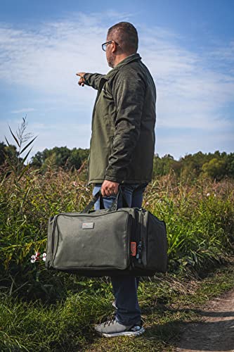 CONSERVAZIONE SICURA DELL'ATTREZZATURA DA PESCA: La caratteristica principale della borsa da pesca è il pannello apribile ampiamente che consente di accedere rapidamente all'interno e di vedere il contenuto. Due maniglie e una comoda tracolla facilitano il trasporto, mentre un'imbottitura spessa e scanalata protegge la spalla dal taglio della cinghia quando si trasportano oggetti pesanti. Perfetta per conservare attrezzature e accessori per la pesca di carpe. Ideale per lunghe spedizioni.