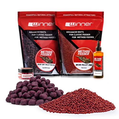 IL SET INCLUDE: 1 x Ready Soft Pellet 8 mm, 1 x Micro Pellet 2 mm, 1 x Fluo Pop Up Boilies 8 mm i 1 x Turbo Diffusion Booster: metodo di alimentazione perfetto. Sono offerti diversi gusti, quindi potete provarli con il Method Feeder e scegliere il migliore per voi.