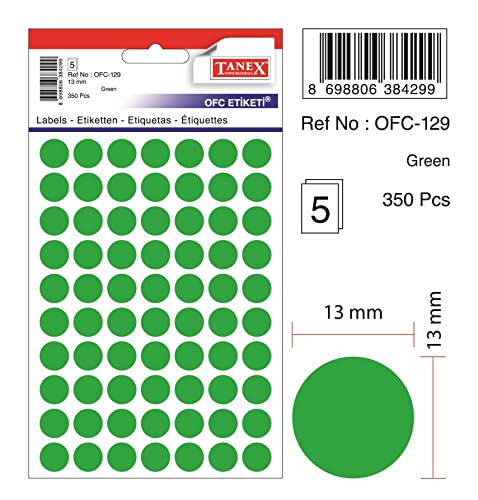 Tanex OFC-129 - Etichette multiuso, rotonde, diametro: 13 mm, 700 pezzi, colore verde