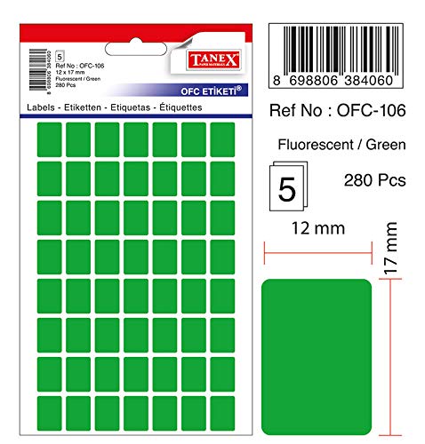 TANEX Punti del contrassegno OFC-106 diversi colori Misura 12x17mm Diametro 10 Foglia 560 Etichette / Pack - fluorescente Verde