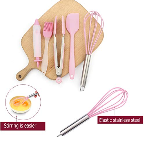 TANGGER 8 PCS Rosa Utensili da Cucina in Silicone Set,Frusta Manuale Silicone Pennelli Pasticceria Spatole Resistenti al Calore Pinze da Cucina Acciaio Decorazione per Torta da Cucina Penna
