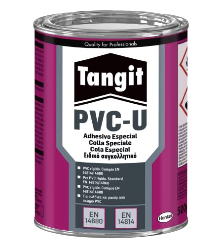 Tangit PVC-U, Adesivo per PVC, Ideale per Giunzioni di Tubi in PVC Rigido, Assemblaggio di Tubi e Raccordi in PVC anche sotto Pressione, Grondaie, Condutture di Cavi, ABS, Latta da 500g