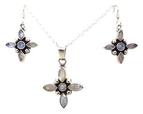 Tanglz Magnifico Parure Ciondolo/Collana e Orecchini in pietra di luna e argento massiccio 925/1000 pietra calma e stabilizzare Confezione gratuito con seguito