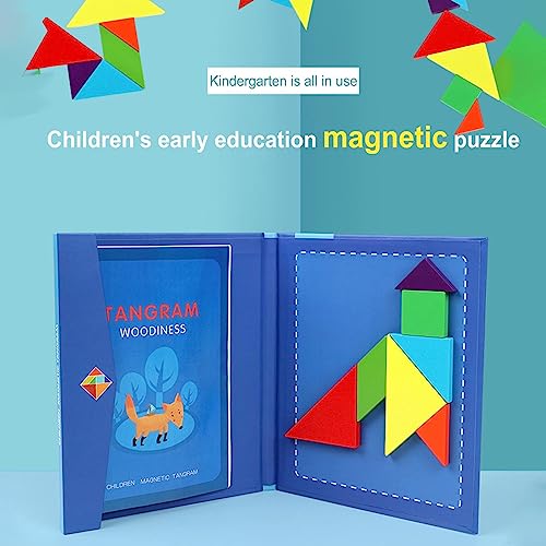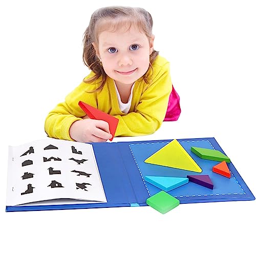 ℴUsato per i bambini: lascia che i tuoi bambini di età compresa tra 3 e 8 anni liberino il loro potenziale creativo con questo gioco di puzzle tangram magnetico in legno. È un giocattolo educativo che li sfida a creare diversi modelli colorati e sviluppare capacità di pensiero logico.