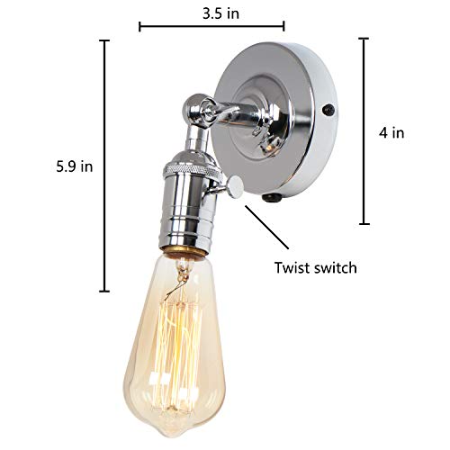 TANGSHI Mini Industriale dell'annata Applique da parete Lampada da parete a luce Regolabile Finito in Cromo Testa in rame con Portalampada E27 per casa, ristoranti,Club, Bar