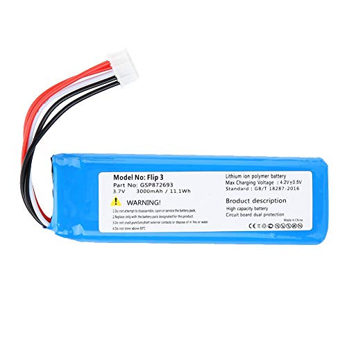 Tangxi Batteria Ricaricabile al Litio di Ricambio da 3,7 V 3000 mAh/11,1 Wh DC per Altoparlante Flip 3