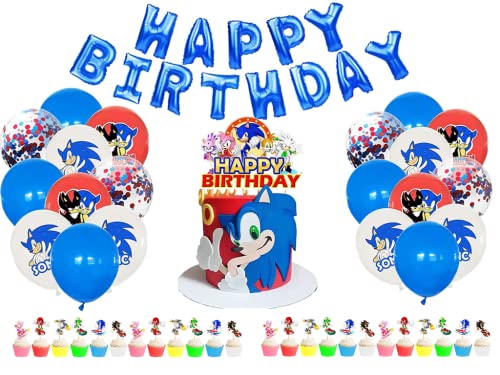 Il prodotto contiene: 1 festone di buon compleanno, 1 decorazione per torta di compleanno, 12 decorazioni per cupcake, 20 palloncini in lattice.