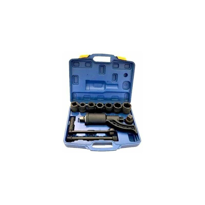 Attrezzo indispensabile per allentare o stringere dadi e bulloni delle ruote di motrici di autotreni, mezzi agricoli e autobus. Grazie al sistema di ingranaggi interni permette di svitare senza sforzi anche i bulloni più ostici. Specifiche: Per lo smontaggio di bulloni ruote di camion e trattori Grazie al suo sistema di ingranaggi interni realizza un rapporto in uscita pari a ben 5000 N.M Bussola da 21mm con profilo quadro Bussole da 24, 27, 30, 32, 33 e 38mm con profilo esagonale 1 adattatore Prolunga da 250 mm Il tutto in una valigetta di plastica Nota bene. Il colore della valigetta può variare in base la nostra disponibilità in magazzino!