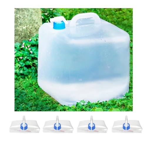 Tanica Acqua 20 Litri - con Rubinetto 4 pezzi Contenitori d'Acqua Tanica Pieghevole Senza BPA Serbatoio d'acqua Potabile Tanica d'acqua da Campeggio per Acqua All'Aperto, l'esterno, Emergenza, Picnic