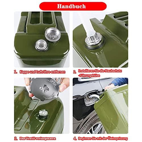 Materiale della tanica di benzina: tanica di benzina da 10 litri, piastra in acciaio zincato. Non ci sono sbavature o danni alla vostra H?nden. Tanica per benzina con attacco grande nel veicolo, tanica del carburante ad alta tenuta con raccordo di rifornimento. Il grande design di presa d'aria e uscita dell'aria rende il rifornimento più comodo e facile da trasportare.