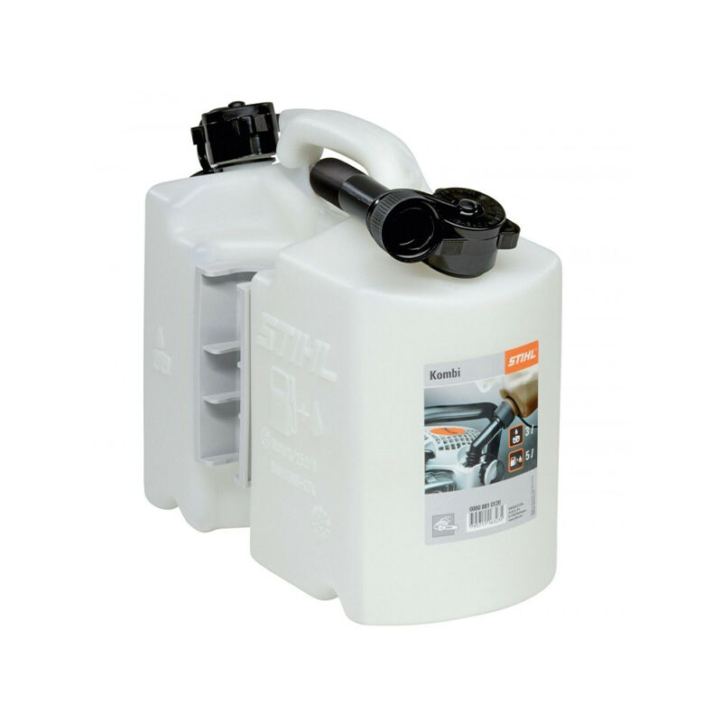 Tanica carburante Stihl con doppio serbatoio, ideale per trasportare e conservare in modo comodo e sicuro miscela ed olio. Caratteristiche: Capacita' benzina: 5 lt Capacita' olio: 3 lt 2 alloggiamenti per attrezzi e sistema di rifornimento carburante Tanica combinata trasparente professionale Stihl Kombi - 5 + 3 Litri Tanica carburante Stihl con doppio serbatoio, ideale per trasportare e conservare in modo comodo e sicuro miscela ed olio. Caratteristiche: Capacita' benzina: 5 lt Capacita' olio: 3 lt 2 alloggiamenti per attrezzi e sistema di rifornimento carburante