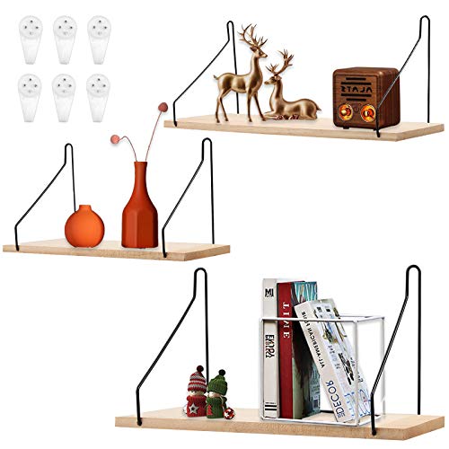 TANiCE Mensole da Muro in Legno Scaffale Appese Massello Ripiani Sospesi a Parete Portaoggetti per Decorazione Soggiorno Camera da Letto con Ganci Chiodi