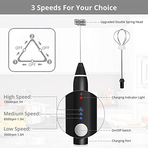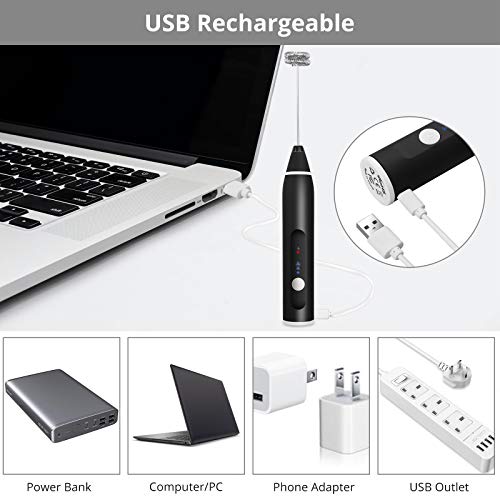 TANiCE Montalatte Elettrico in Acciaio Inox con Doppia Frusta Schiuma 3 Velocità di Sbattimento Cucchiaio Dosatore Regolabile Miscelatore USB Ricaricabile per Caffè Latte Cappuccino Cioccolata Uova