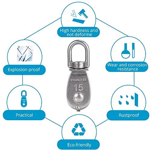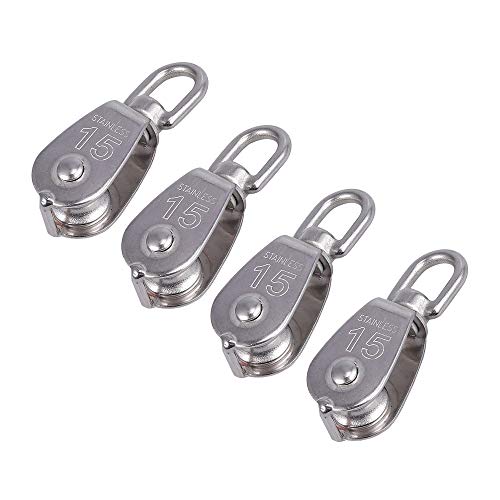 Tanice 4PZ M15 Puleggia Carrucola Singola Blocco Carrucole in Acciaio Inox 304 Anti-Ruggine Resistente Set M15 Puleggia Monoblocco Puleggia Rullo di Carico 35kg Puleggia di Sollevamento Heavy Duty