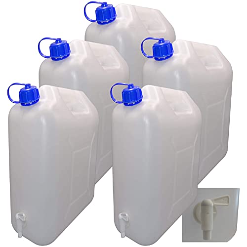 5 taniche da 10 l con coperchio, rubinetto e beccuccio, per acqua potabile naturale