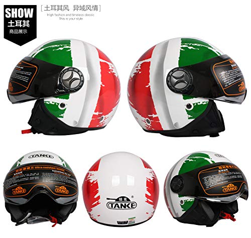 Tank TK-701 Jet Pilot Mofa Chopper Cruiser Scooter Retro Vespa Helmet Open Face Casco Moto da Motociclista Bandiera Italiana Stile ECE Certificato con Visiera,M57~58cm
