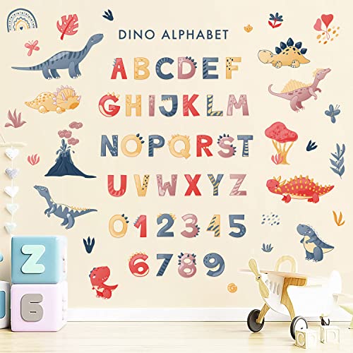 Tanlaby Adesivi Murali Alfabeto Dinosauro Adesivi da Parete Animali Numeri ABC Stickers Murali educative Lettere Numero Stickers Muro per Bambini Camerette Camera da Letto Asilo Nido