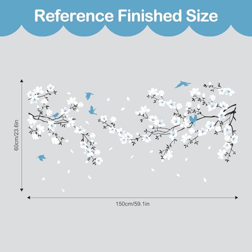 Tanlaby Blu Bianco Fiore Adesivi Murali Fiore di Ciliegio Adesivi da Parete Uccelli sul Ramo di Albero Stickers Muro Removibili per Camera da Letto Soggiorno Divano TV Decorazione Parete