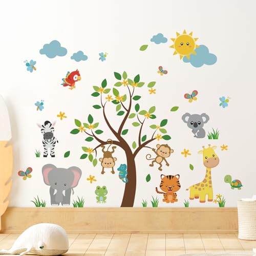 Tanlaby Giungla Animali Adesivi Murali Scimmia Albero Adesivi Da Parete Giraffa Elefante Vinile Stickers Muro per Bambini Camera da Letto Stanza Della Scuola Materna Asilo Nido Decorazioni Murali
