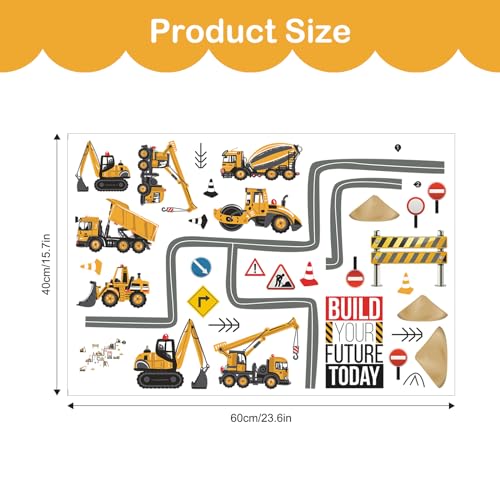 Tanlaby Veicoli da Costruzione Adesivi Murali Costruzione Automobili Adesivi Da Parete Camion Scavatrice Trattore Stickers Muro per Bambini Ragazzi Camera da Letto Cameretta
