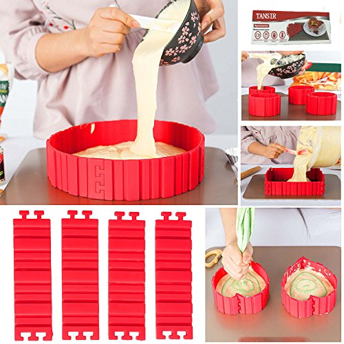 TANSIR, stampi per Torte, Bake Snake, Anello Regolabile in Silicone, Stampo per Dolci, Accessori per Fondente, Fai da Te, Una varietà di Forme (di Colore Rosso), 4 Pezzi