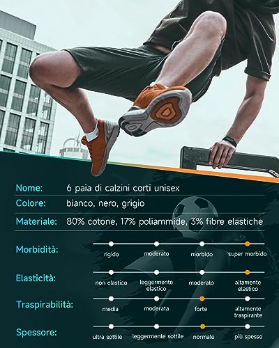 Calze antibatteriche traspiranti: realizzate in cotone a fibre lunghe di alta qualità che possiede delle proprietà ultra-permeabili all'aria e anti-umidità, rendendo le nostre calze traspiranti e confortevoli. Poi, sentirete i piedi asciutti e senza odore durante tutta la giornata, anche se lo indosserete per un allenamento, una corsa o semplicemente per rilassarvi, non vi sentirete soffocanti.