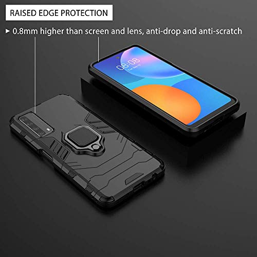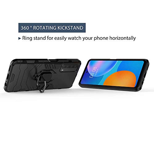 TANYO Cover + [2 Pezzi] Vetro Temperato per Huawei P Smart 2021, TPU/PC Dual Layer Armor Antiurto Protezione Custodia [360° Supporto] con Durezza 9H Pellicola Protettiva, Nero