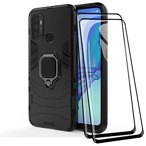 TANYO Cover + [2 Pezzi] Vetro Temperato per Oppo A53S / A53, TPU/PC Dual Layer Armor Antiurto Protezione Custodia [360° Supporto] con Durezza 9H Pellicola Protettiva, Nero