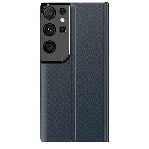 TANYO Smart View Cover per Samsung Galaxy S21 Ultra (S30 Ultra), Prime Custodia a libro con display trasparente finestra, elegante specchio Flip Case Cover con supporto pieghevole - Blu marino