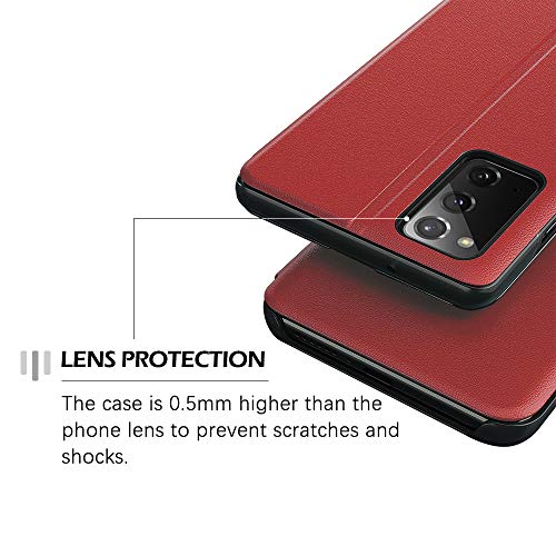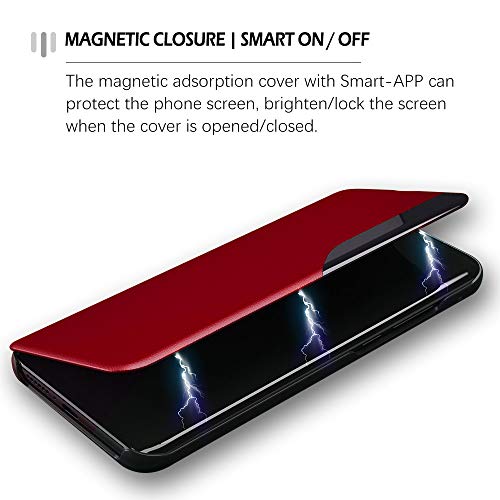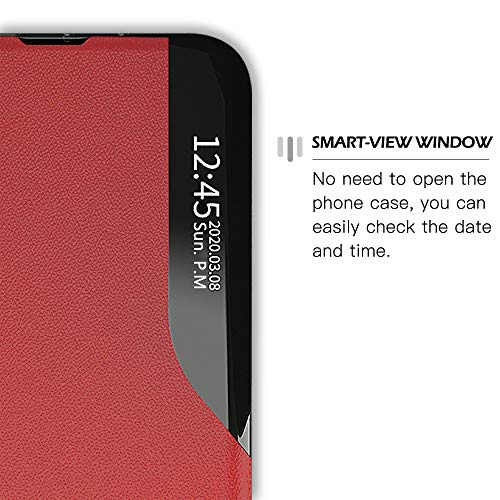 TANYO Smart View Cover per Samsung Galaxy A32 4G Edition, Prime Custodia a libro con display trasparente finestra, elegante specchio Flip Case Cover con supporto pieghevole - Rosso