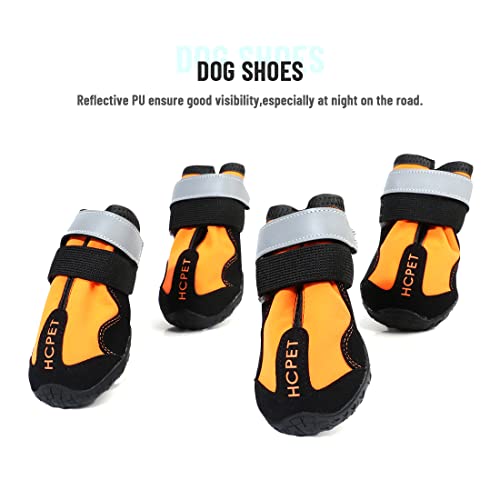 TANZEDMI Scarpe per cani da compagnia di fascia alta in pelle spaziale per cani con strisce riflettenti, stivali per cani, impermeabili, per cani di taglia piccola, media e grande, colore: arancione