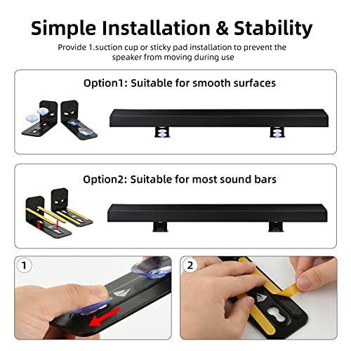 Facile da installare - forniamo due metodi di installazione: 1. attaccare i cuscinetti adesivi sulla staffa per fissare la soundbar;