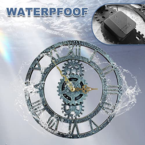 Taodyans Orologio da parete per esterni, 30 cm, stile vintage, da giardino, impermeabile, retrò, per esterni, cucina, soggiorno, orologio da parete industriale 3D, ticchettio (verde)